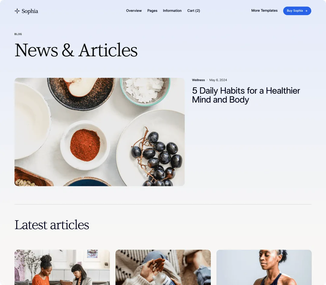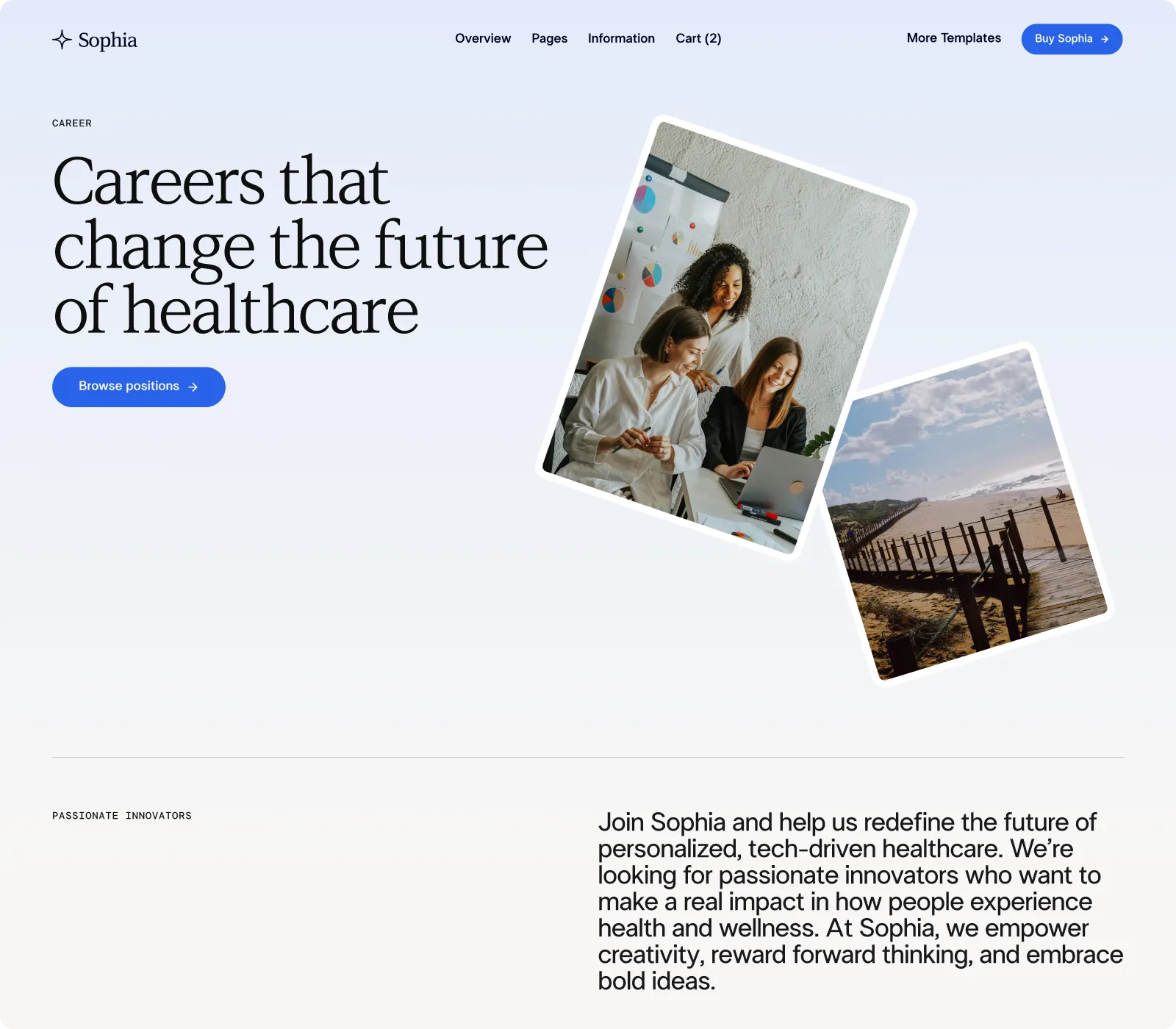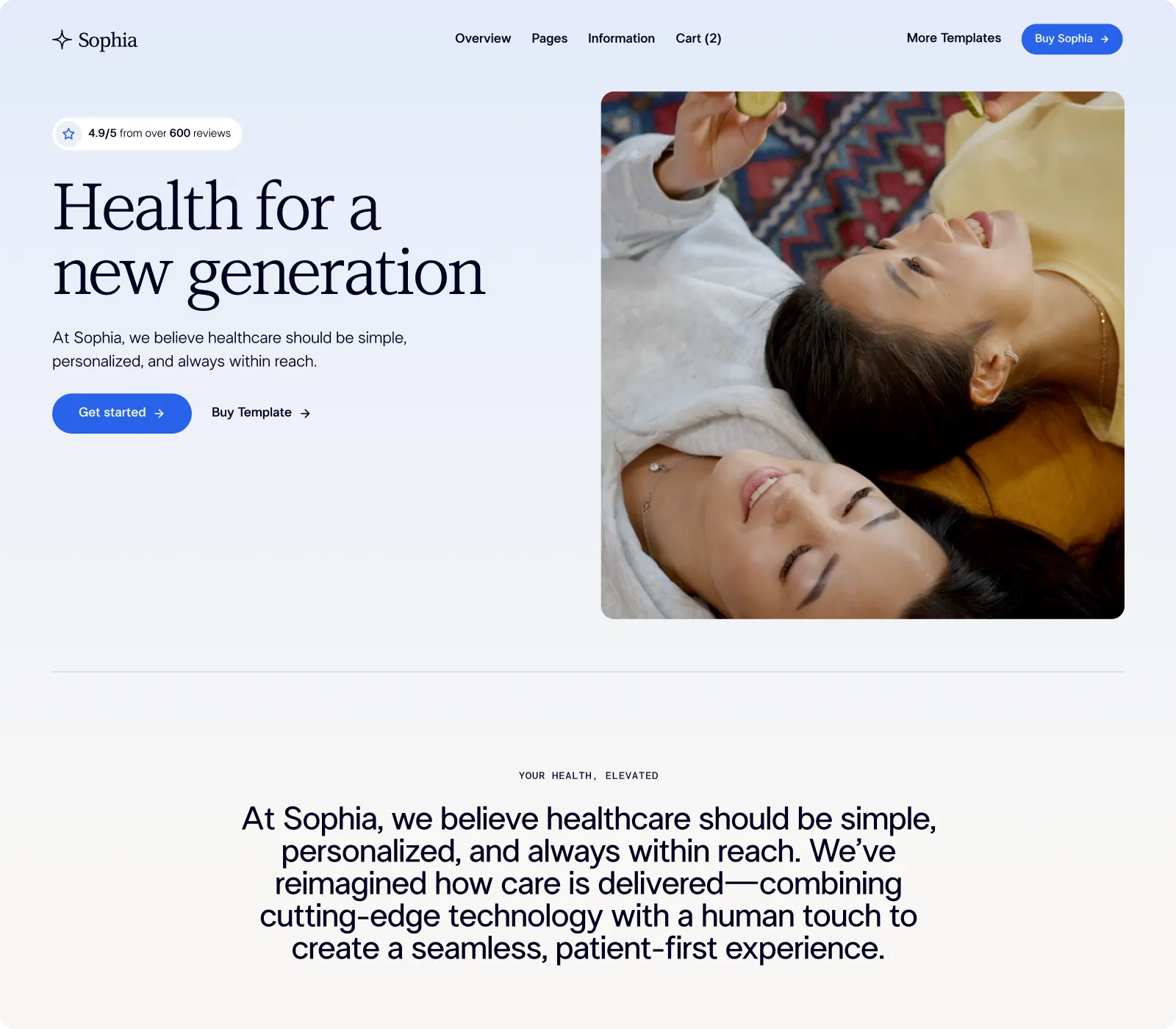 Build your perfect site by mixing and matching pre-designed sections—no coding required. Drag, drop, and adjust for total control.